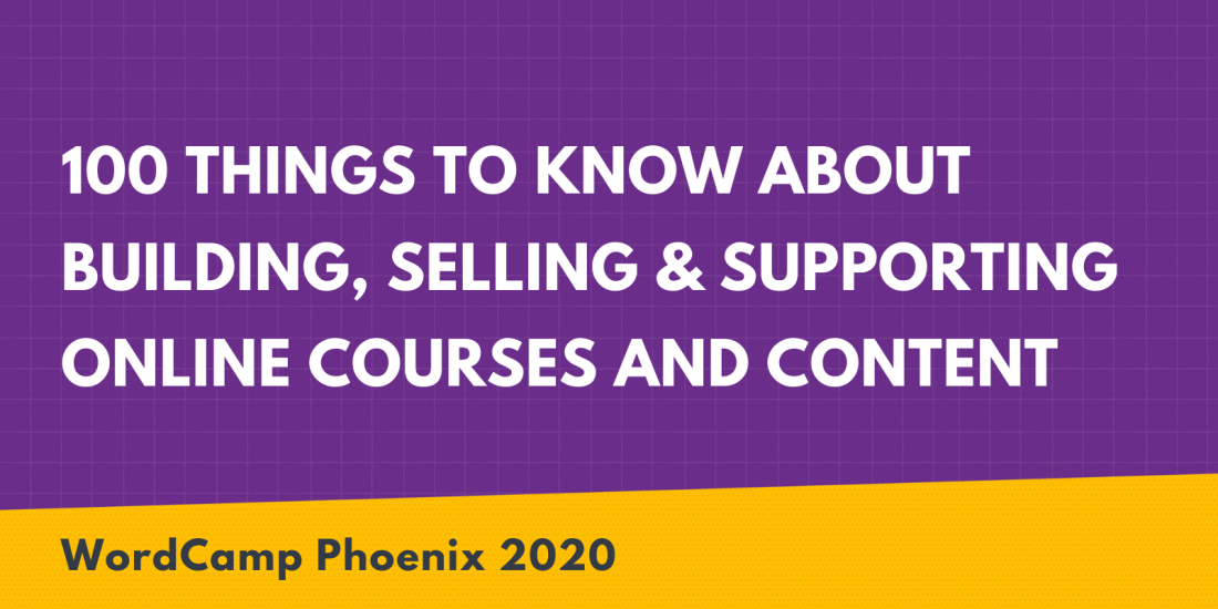 100 Things to Know About Building, Selling and Supporting Online Courses and Content at WordCamp Phoenix 2020